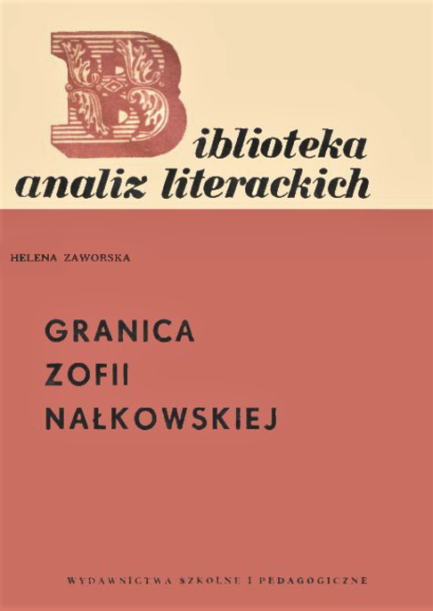 "Granica" Zofii Nałkowskiej / Helena Zaworska. - Warszawa : Wydawnictwa Szkolne i Pedagogiczne, 1974 (Łódź : Druk. Wydaw. Szk. i Pedag.). - 108, [4] s. : il., portr. ; 20 cm.
