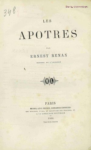 Les apotres / Ernest Renan. - Paris : Michel Lévy Freres, 1866. - LXIV, 388 s.