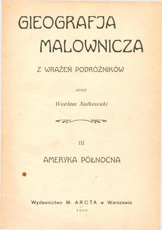 Gieografja malownicza : z wrażeń podróżników. 3, Ameryka Północna / ułożył Wacław Nałkowski. Gieografja malownicza : z wrażeń podróżników. 2, Ameryka Południowa no: 30001003613918. - Warszawa : M. Arct, 1909. - [2], 162, [1] s. : il. ; 20 cm.