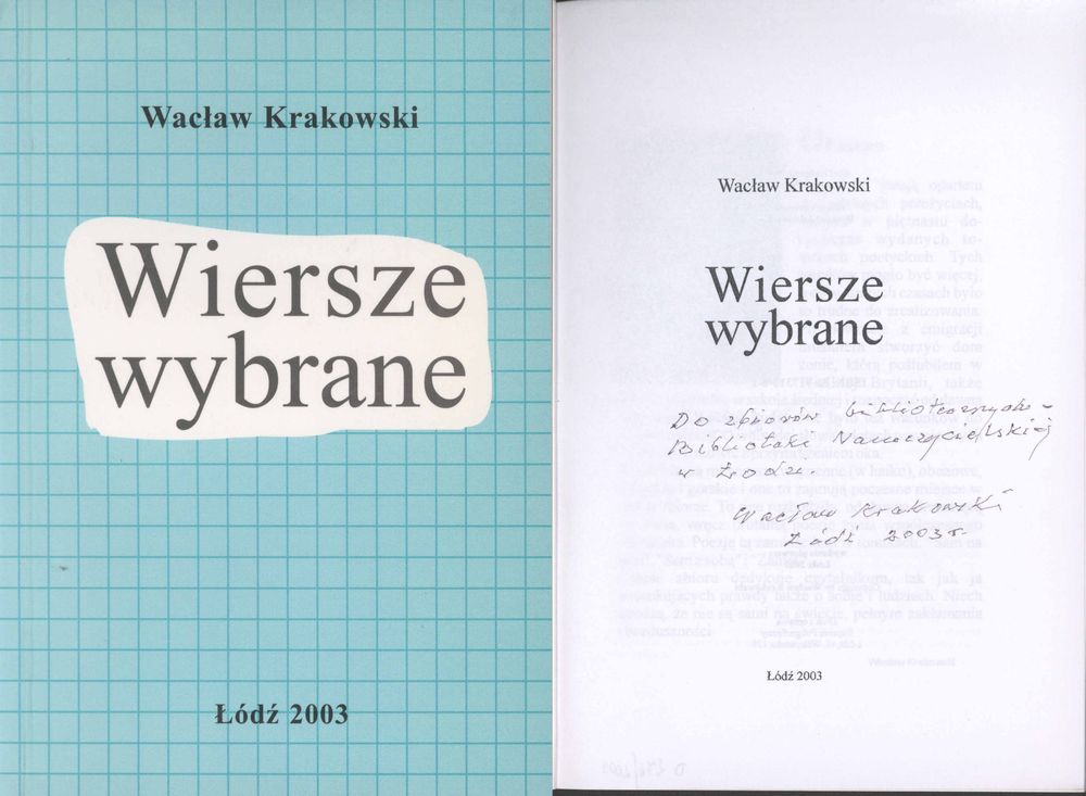 Wiersze wybrane / Wacław Krakowski. - Łódź : [b.w.], 2003. - 248 s. ; 21 cm.