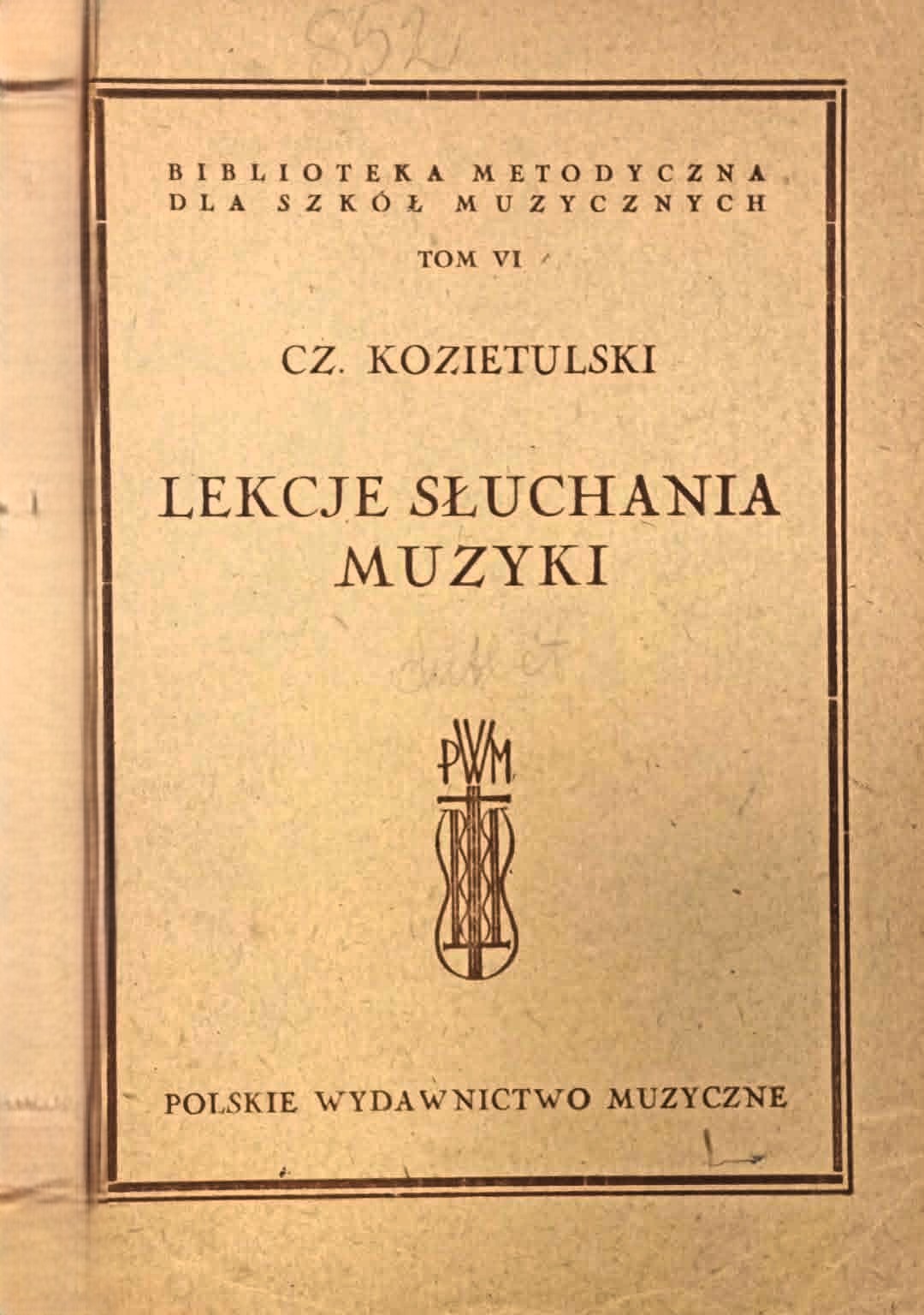 Lekcje słuchania muzyki : zarys metodyki dla szkół umuzykalniających / Czesław Kozietulski ; przedm. Janusz Miketta. - Kraków : Polskie Wydawnictwo Muzyczne, 1947 (Kraków : Zakłady Graficzne "Styl"). - 70, [1] s. ; 21 cm + Dodatek nutowy : s. 7