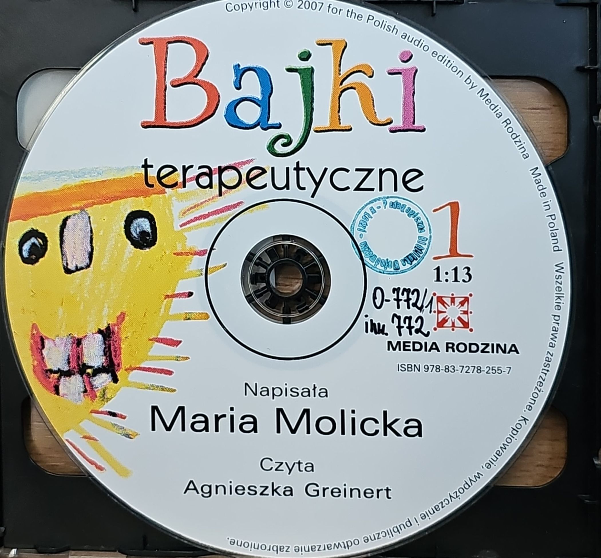 Bajki terapeutyczne [Audiobook] Cz. 1 / Maria Molicka ; czyta Agnieszka Greinert. - Poznań : Media Rodzina, 2007. - 1 dysk optyczny CD (60 minut 13 sekund) ; 12 cm.