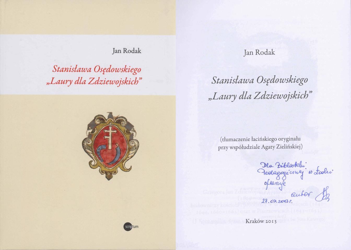 "Podziękowanie" Grzegorza Jana Zdziewojskiego z Łasku / Jan Rodak. - Kraków : Wydawnictwo "Scriptum", 2015. - 193, [2] strony, [3] karty tablic : faksymilia, fotografie ; 22 cm.